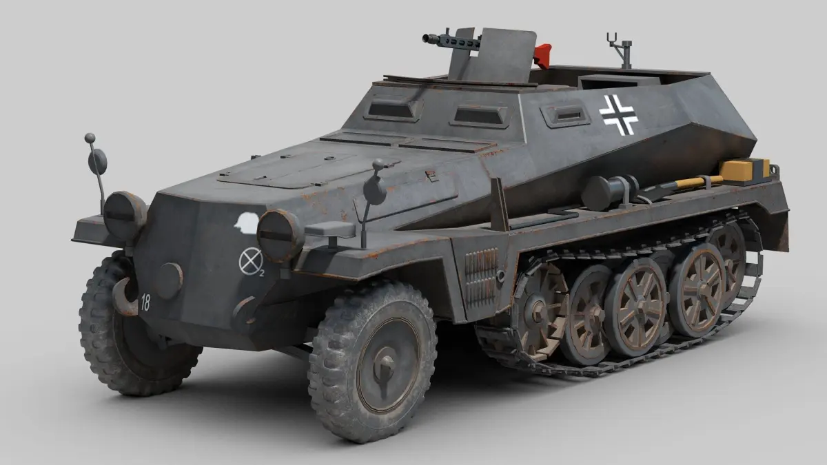 A collection of 4 3D model representing WW2 German military vehicles. The collection includes: