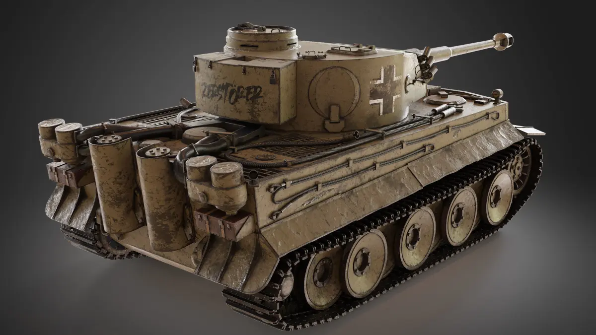 3D model of German tank TIGER-1, on the field in WWII, seen in several major movies likesaving rian and fury, this model has the outside of the machine modeled in detailand you can get breathtaking renders!the model has 189,629 Faces