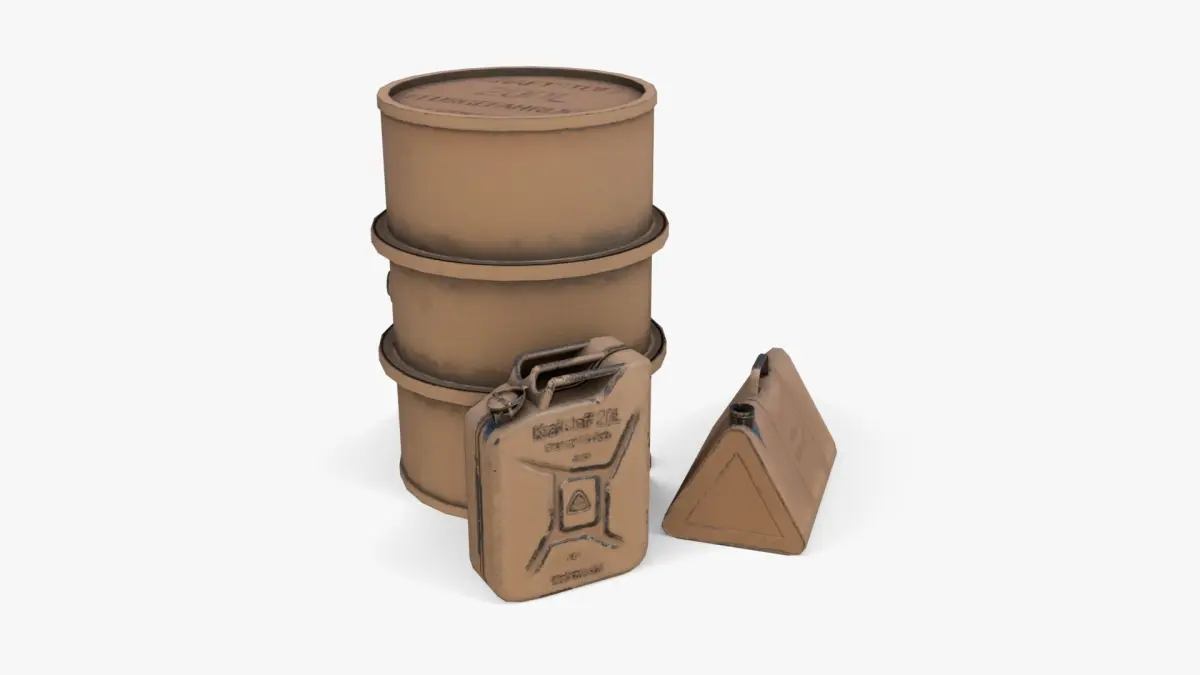 The 3D model of WW2 german oil drums and jerrycan assets. Ready to use in any game engine, this assets are all in lowpoly and can be used on any Second World War scene you have made. This liquid storage asset will embellish all your 3D scenes.