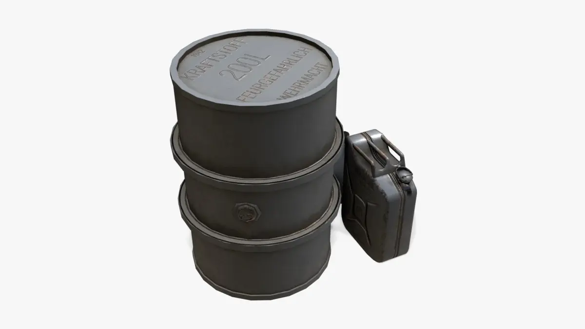 The 3D model of WW2 german oil drums and jerrycan assets. Ready to use in any game engine, this assets are all in lowpoly and can be used on any Second World War scene you have made. This liquid storage asset will embellish all your 3D scenes.