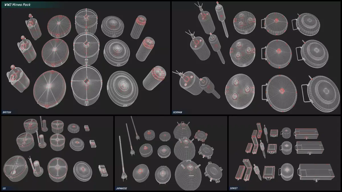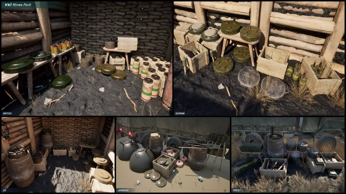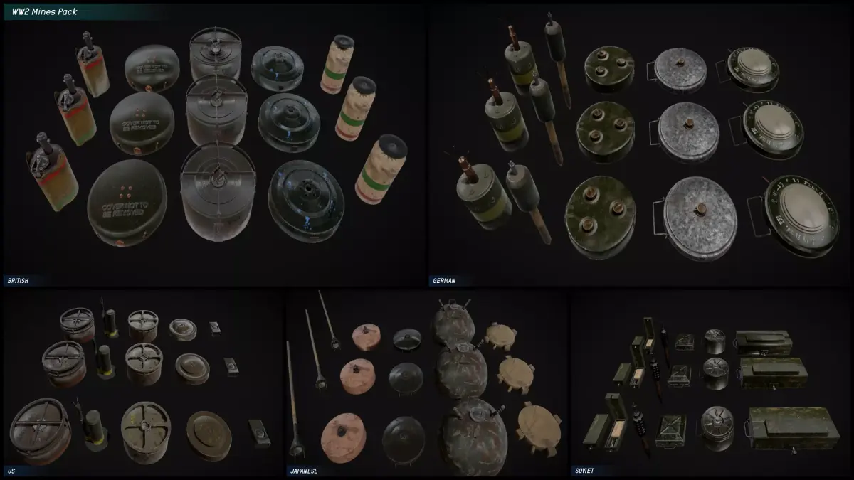 DISCLAIMER: Only the WW2 MINES PACK is provided in this product any other assets seen in the media gallery are background assets to show the asset in a game environment!