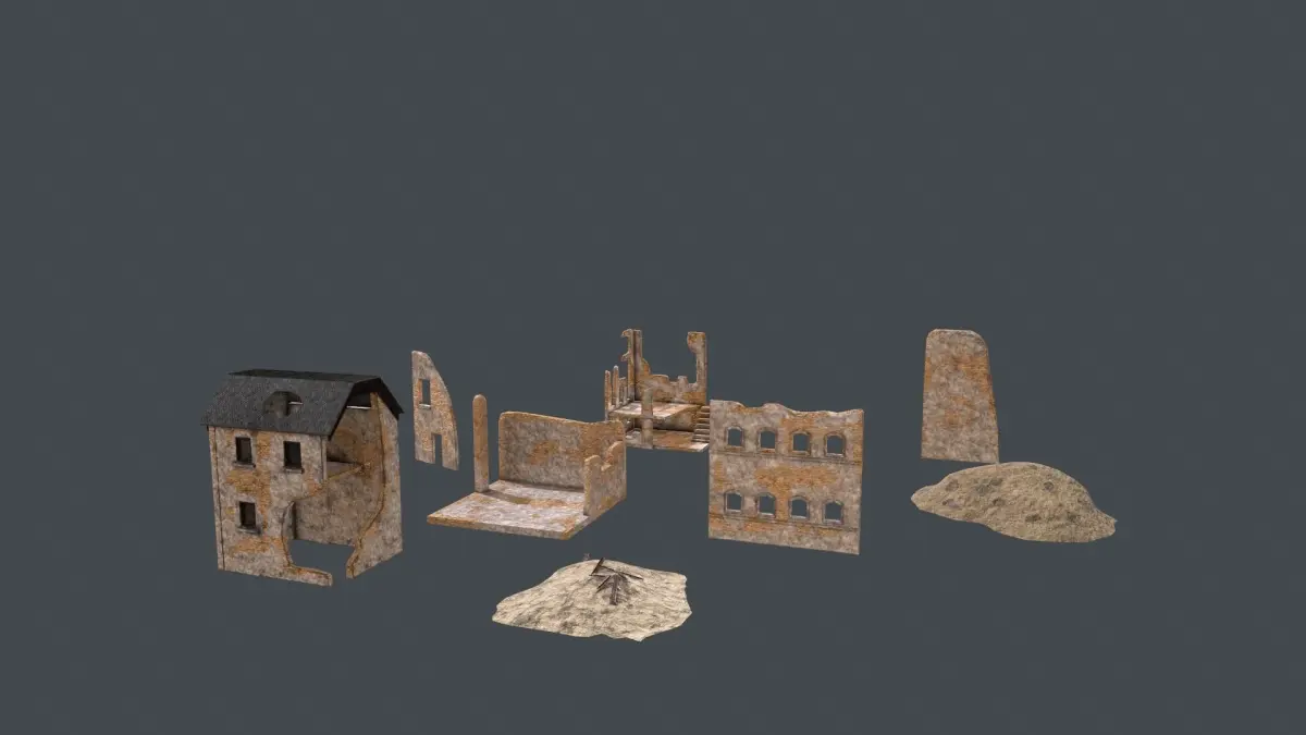 - it is a low poly ww2 style ruin pack. İt can be used at every type of projects such as games, videos, short films.