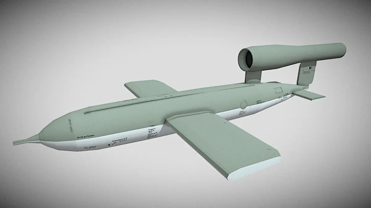 The V-1 flying bomb was an early cruise missile. Its official (RLM) name was Fieseler Fi 103 and it was also known to the Allies as the buzz bomb or doodlebug.