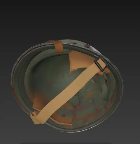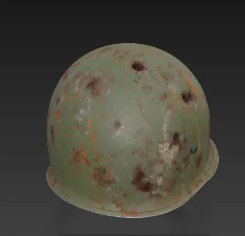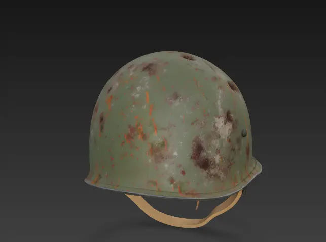 Experience the raw realism of World War II history with this meticulously crafted 3D model of a WWII-era M1 military combat helmet. Designed with photorealistic accuracy, this model features authentic battle damage including multiple bullet dents, shrapnel impacts, deep rust patches, and chipped olive drab paint. The worn leather chin strap, frayed edges, and torn interior liner reflect heavy field use, while faded unit insignias add to the historical authenticity. Modeled in 8K ultra-high definition with dramatic lighting, this helmet captures the essence of wartime wear and corrosion, making it ideal for games, films, VR simulations, or historical visualizations