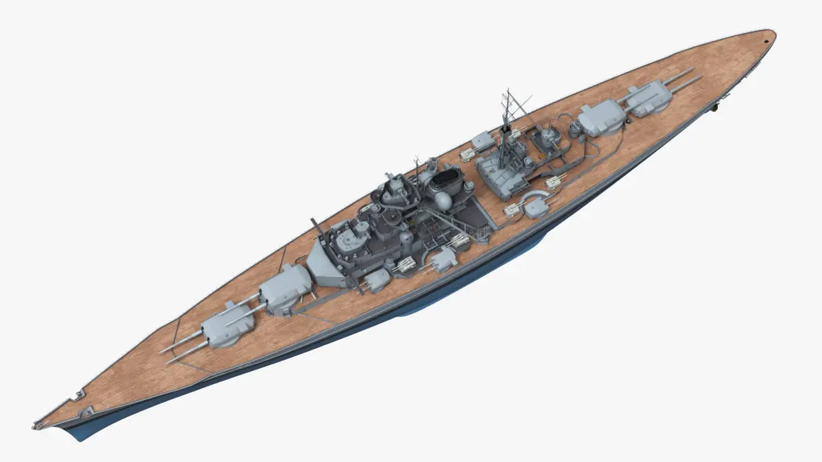 For naval history visualizations, World War II educational materials, marine simulation software, warship modeling communities, cinematic sea battle recreations, historical documentaries, museum VR displays, defense research visual aids, strategy game assets, and 3D animation projects featuring classic naval vessels.