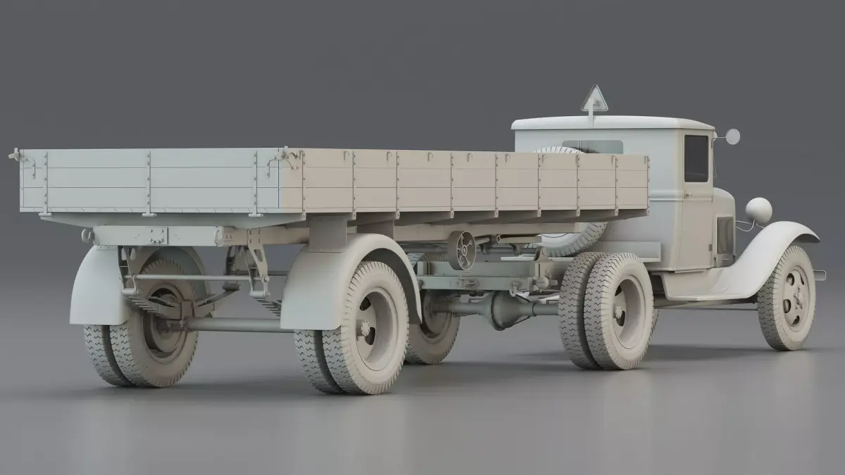 Highly detailed and historically accurate 3D model of a WWII German semi-truck with attached trailer.The model is built as a low poly mesh with a Turbosmooth modifier, allowing you to easily control the mesh density.