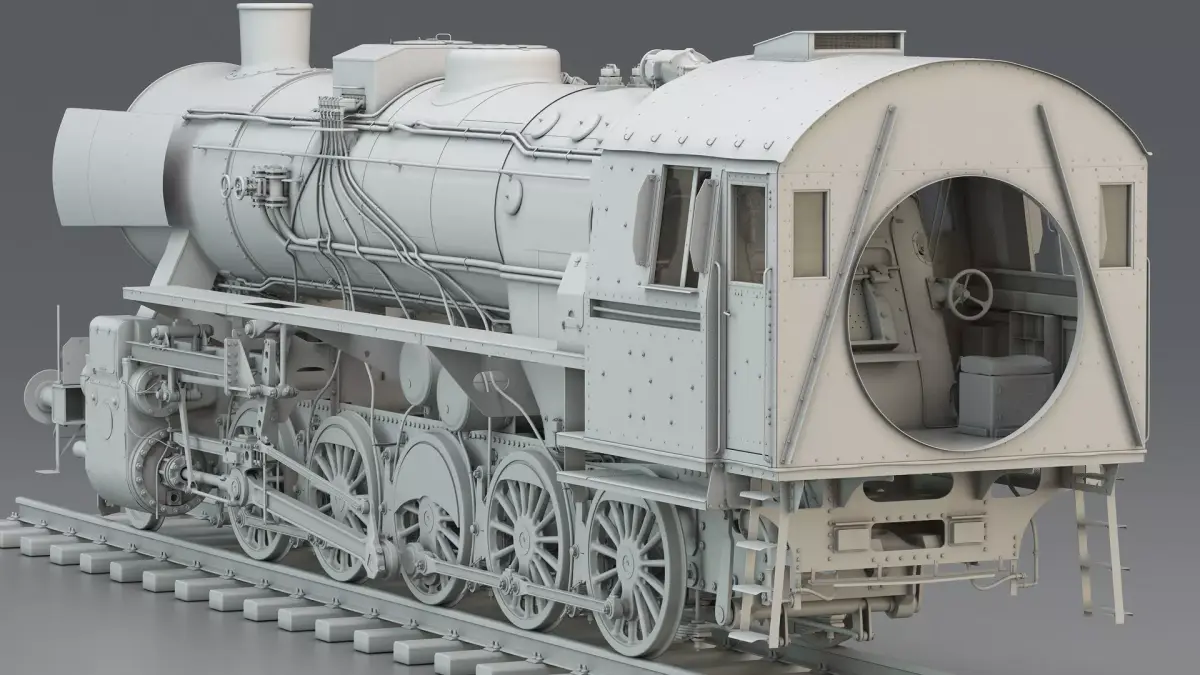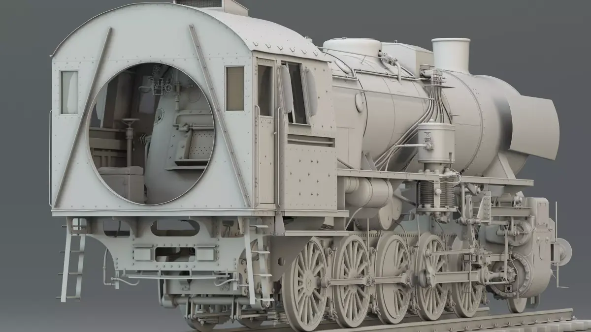 Highly detailed and historically accurate 3D model of a WWII German steam locomotive BR52 with Tender.The model is built as a low poly mesh with a Turbosmooth modifier, allowing you to easily control the mesh density.