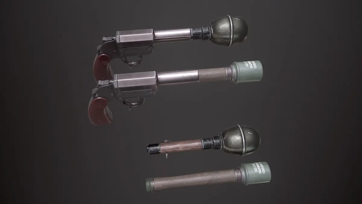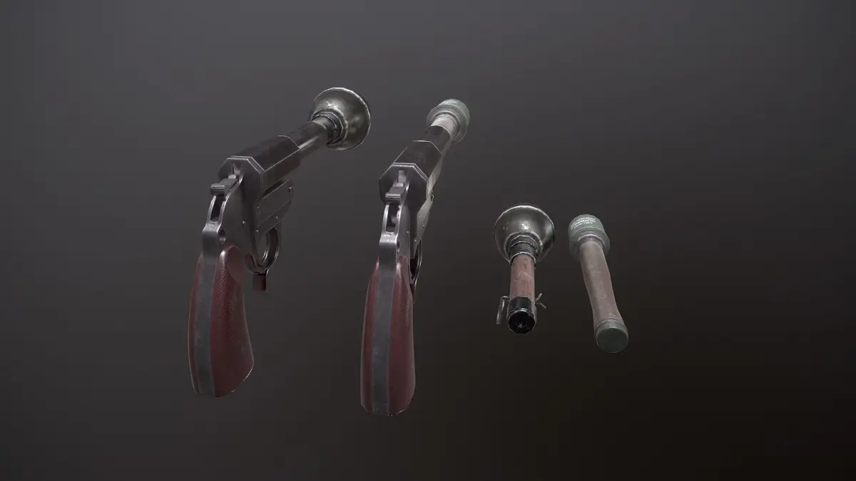 WWII Granade Launcher with 2 diferent granades. This model is ready for game o any virtual reality production.Grenade 01: 892 trisGrenade 02: 748 trisLauncher: 2 429 tris