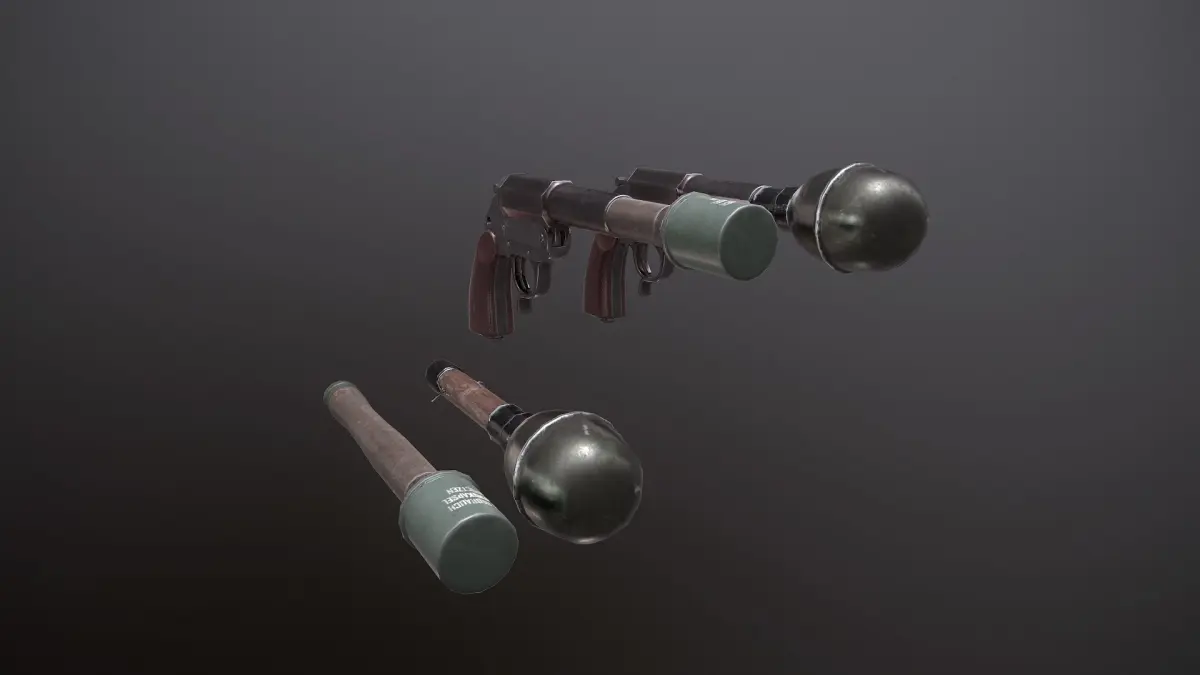 WWII Granade Launcher plus Grenades Low-poly 3D model