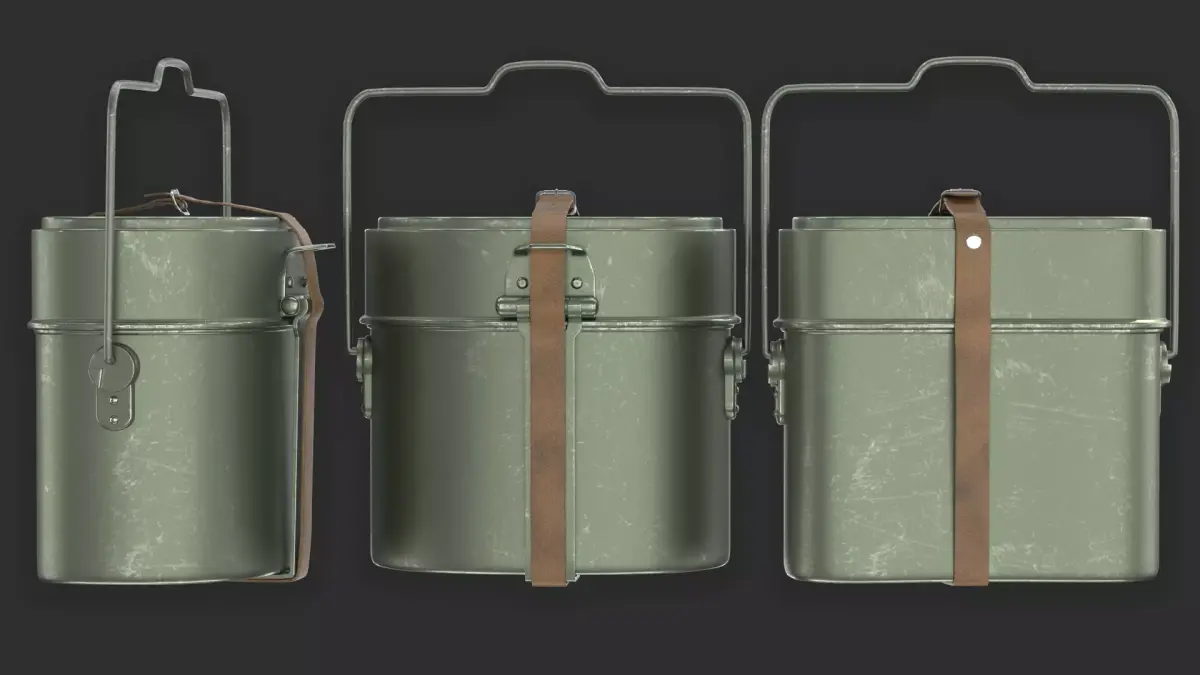 UsageInspired by classic WWII infantry gear, this mess kit was used by soldiers in the field for cooking, carrying, and eating meals. Its practical, battle-ready design makes it perfect for military scenes, war environments, survival setups, and historical recreations.