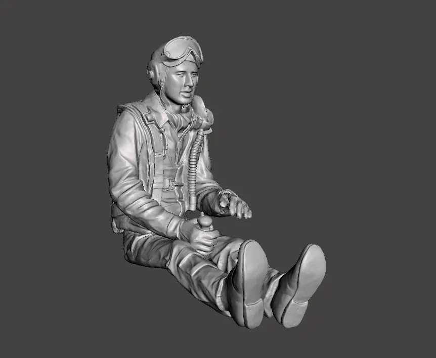 WWII USAF pilot. Good for giant scale project or 1/24 scale projects.100% size pilot work with 1/5- 1/6 scale projects.There are 4 STL files.