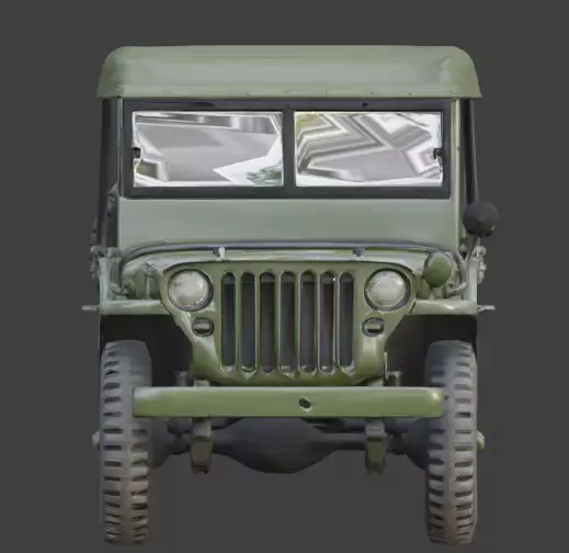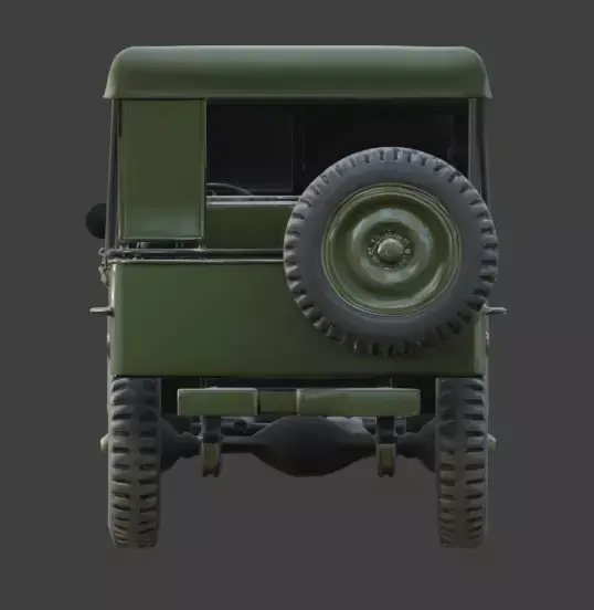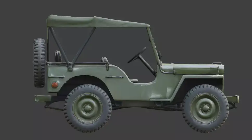 A realistic 3D game asset of a WWII-era Utility Jeep, featuring the iconic small 4x4 military vehicle design.