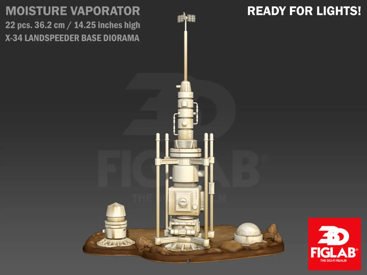 The perfect companion for your X-34 Landspeeder!! this diorama base comes with a highly detailed moisture vaporator 2 collectors. The base replicates the sandy floor of Tatooine, and showcases the X-34 Landspeeder fully.