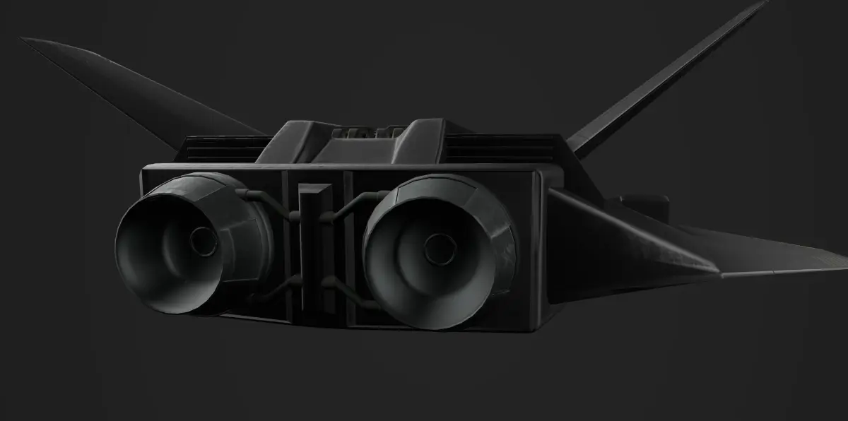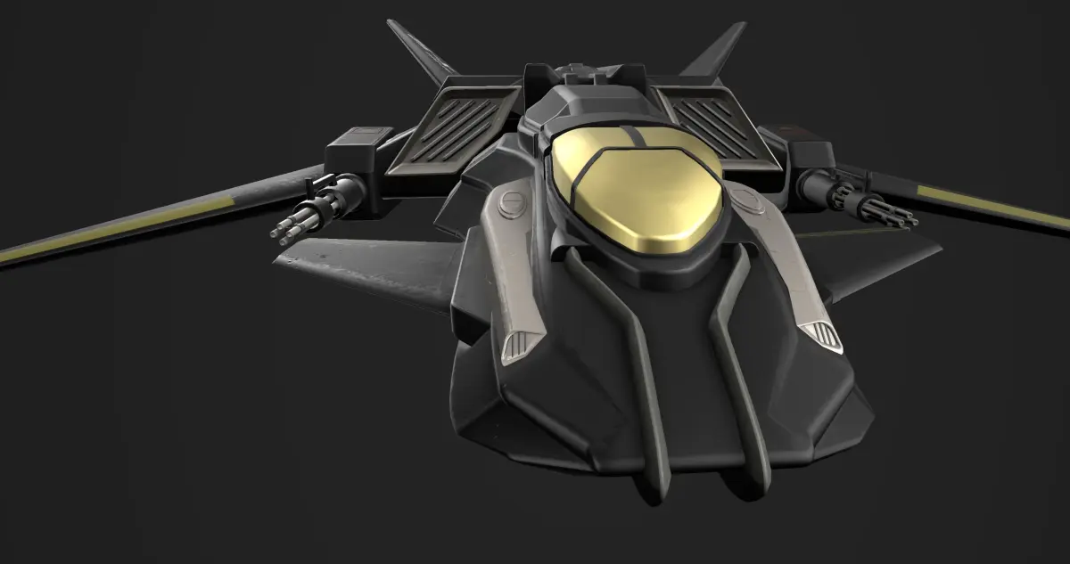 Powered by a small fission reactor and propelled by next-gen hydrogen thrusters, the X-72 is considered an experimental design. The aircraft is fitted with unique equipment, such as its dual large rotating turrets capable of firing high caliber projectiles, the X-72 is able to wreak havoc at anything it encounters. Fitted with large canards and forwarding arching wings, the aircraft is capable of impressive aerodynamic flight. Able to fly temporally within the vacuum of space thanks to its large engines, the X-72 is considered a space plane.