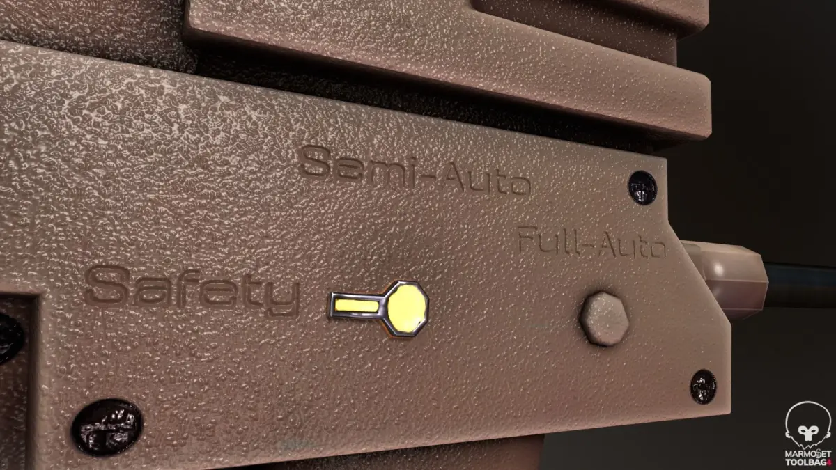 - Fully Rigged and comes with a demonstration animation. The Slide and fire selector are fully rigged as well as the detachable magazine.