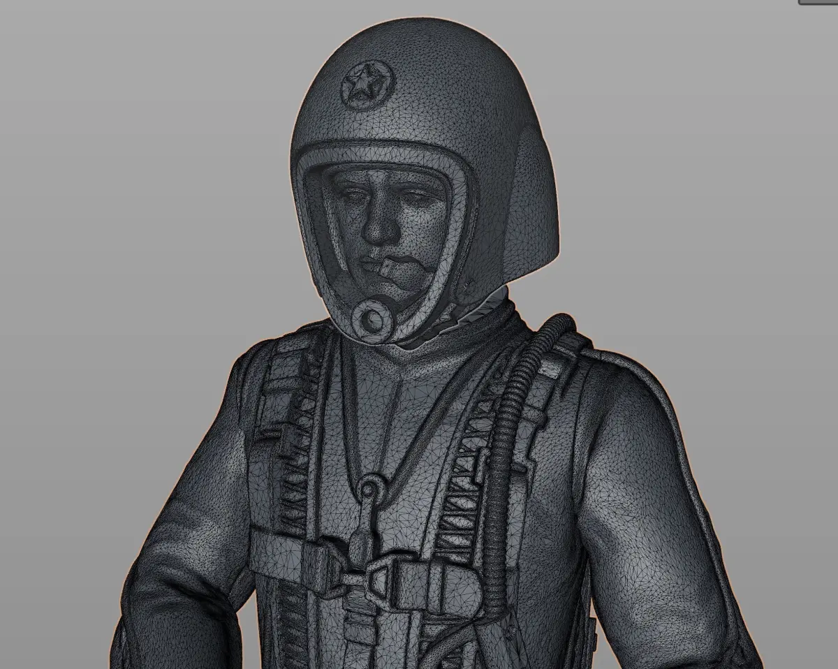 Very detailed data sculpture of a pilot from the time of the cold war in the fifties, sixties.