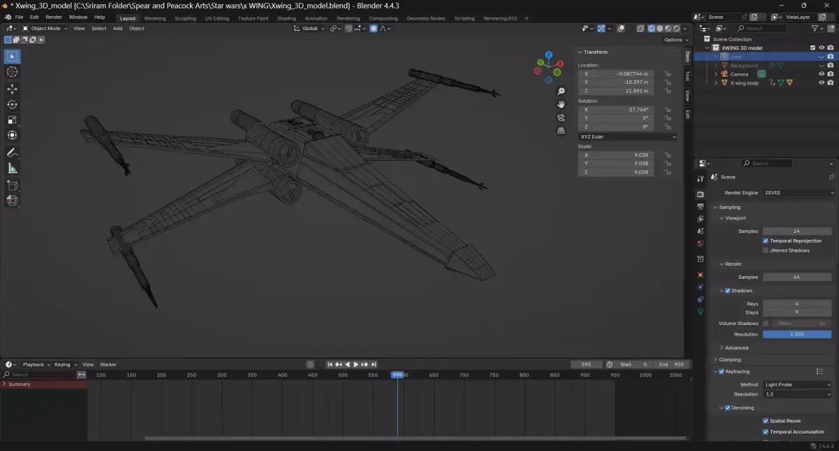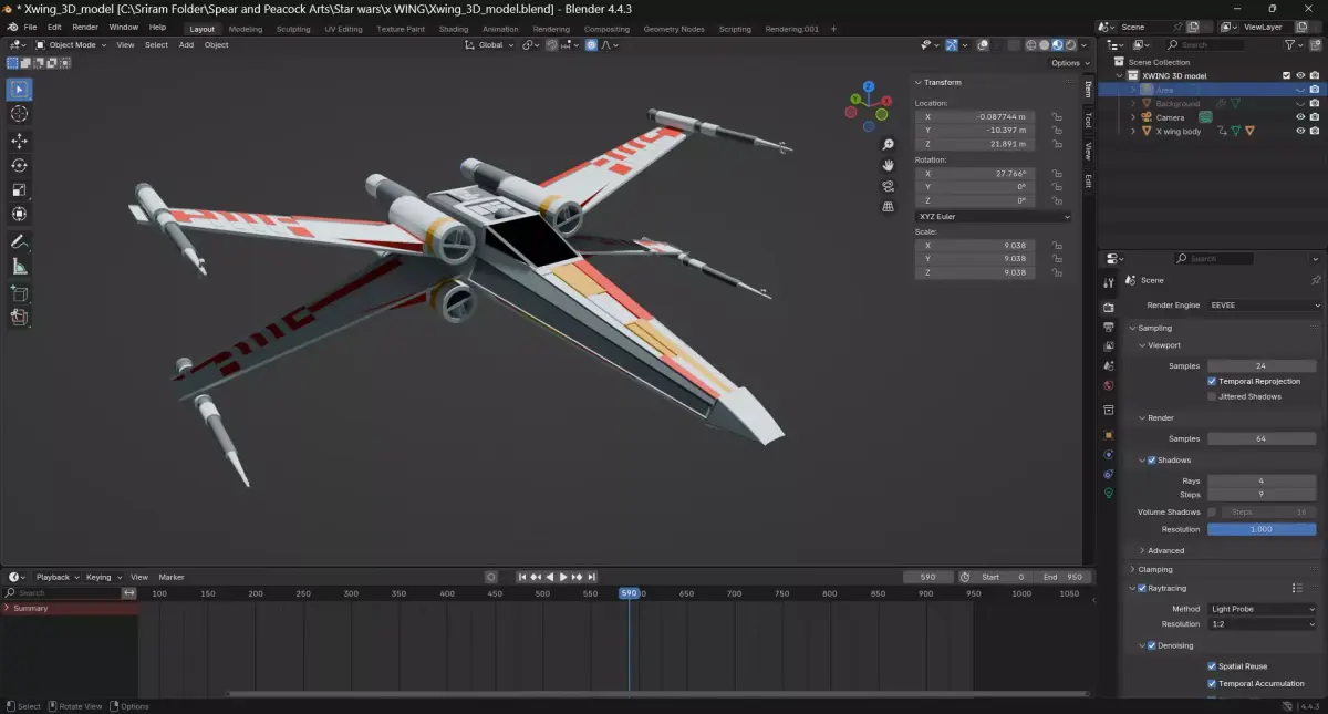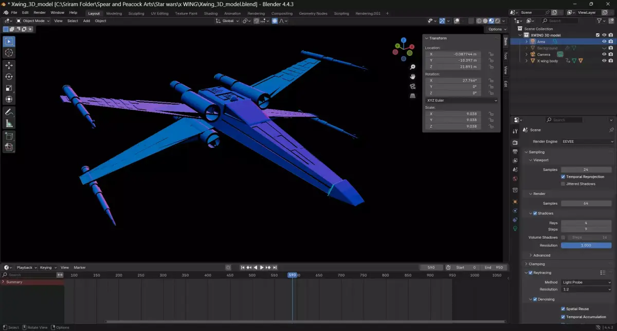 This is a clean low-poly starfighter model, inspired by the classic X-Wing design. It is optimized for games, animation, and real-time applications.