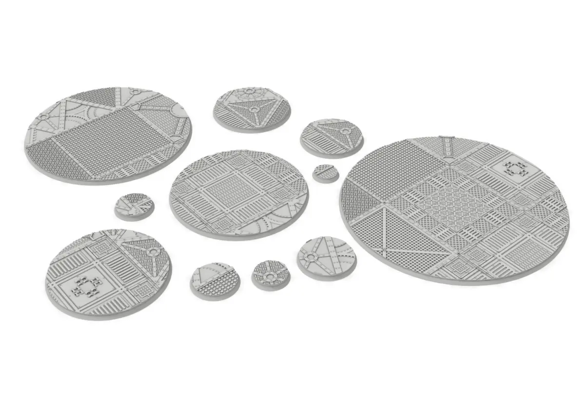 x1000 Round, oval, square, rectangular, hexagonal, industrial textured bases from damocles Kickstarter:https://www.kickstarter.com/projects/alario/damocles-part-1-modular-industrial-buildings-for-wargaming?