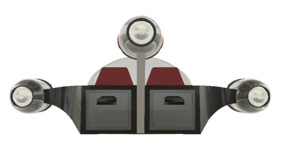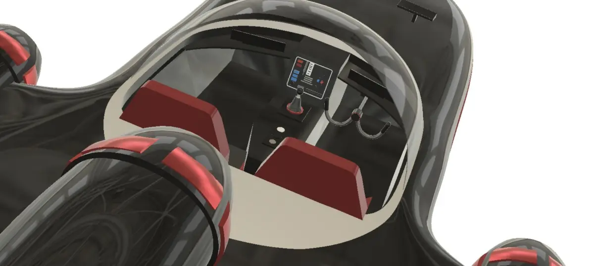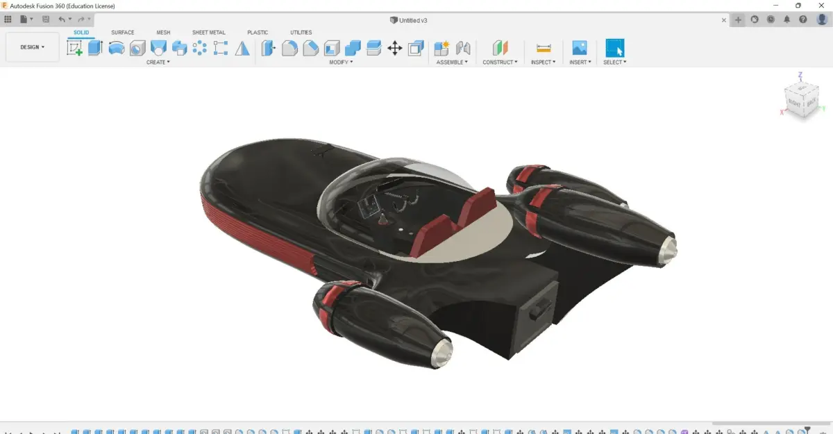 This is dark version of the x34 landspeeder from star wars driven by Luke Skywalker in episode IV. It is fictional hovering vehicle. Model was made in Autodesk Fusion 360. Painted in black and red combination with a little alluminium details.