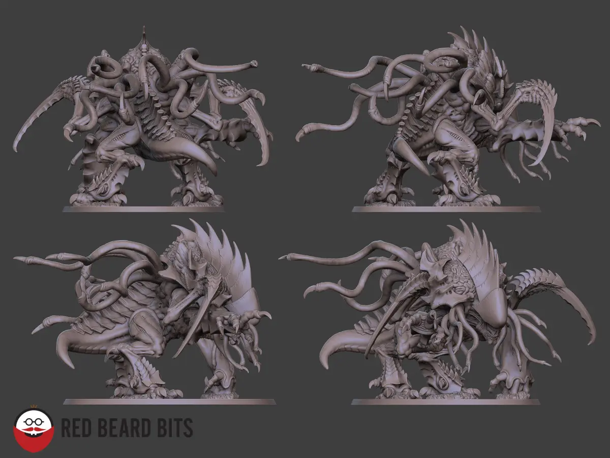 Here comes the Maledictor! A Xenoteras monster that not only is an amazing warrior but also a great psychic! This will make a must-have addition to your army. Comes enough pieces to make 2 different options (or more if you alternate them): Tentacle version and Talons Version. The tentacle on will make use of both tentacles Front and Back, while the Talon one will need Talons Front and Exhaust on the back, but again, you can mix and match as you please. Also comes with different sets of main arms with different designs, adding more variants! The Exhaust piece will need to be mirrored in the slicer, as only comes one side.
