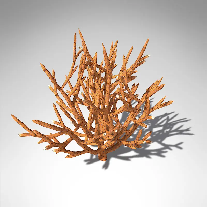 The Birds Nest Coral belongs to the Stone corals, which are the predominant reef constructing animals. It settles particularly in the tidal zone of protected reef roofs and lagoons. The colouring can reach bright beige of up to pink. It is a thin branched colony where polyps are often arranged in rows. There are to find however also forms with completely unordered polyp arrangement.