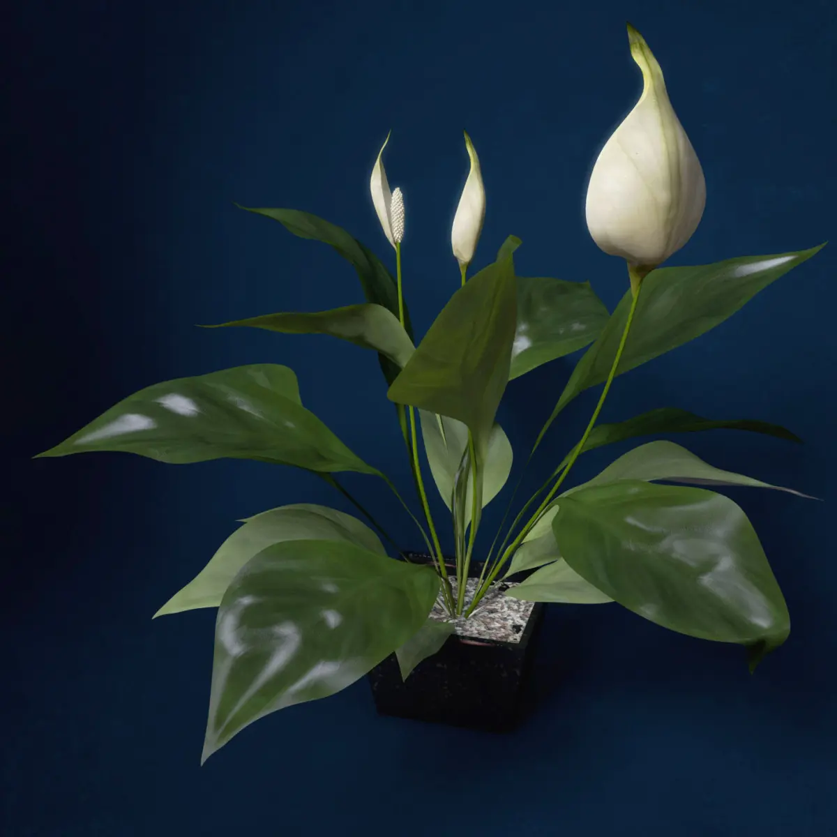 Peace Lilies are tropical plants, that require tropical conditions to grow: shady position, warm temperature, high humidity, well-drained soils to avoid water damage to the roots and the leaves. It is used as potted ornamental in the apartments; it however requires good care to keep healthy. A peculiar characteristic of Peace Lilies is their complete lack of a stem: the leaves grow directly from the subterranean rizoma.