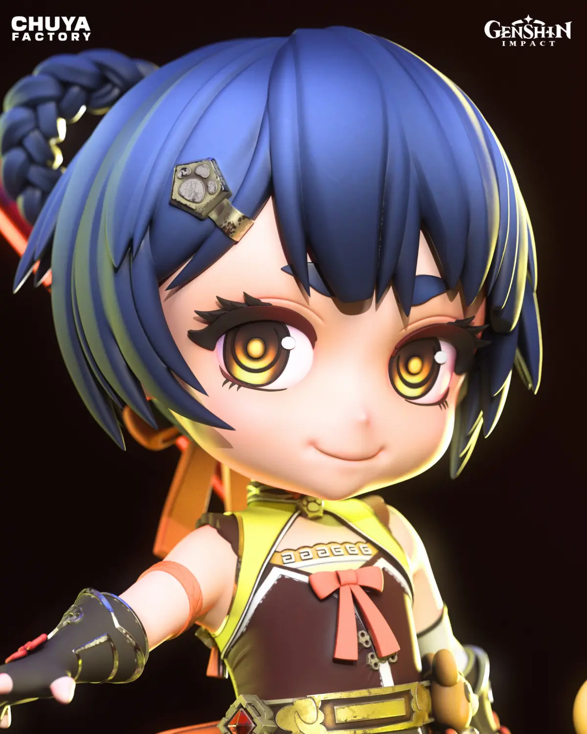 Detailed chibi sculpt with expressive facial features and confident stance