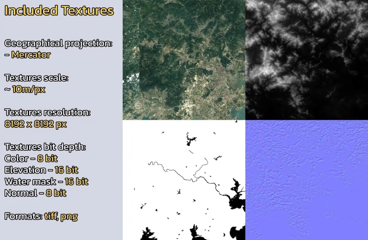 Warning: minor clouds/artifacts may be present on the diffuse color satellite texture due to the nature of the dataset. Check product images.