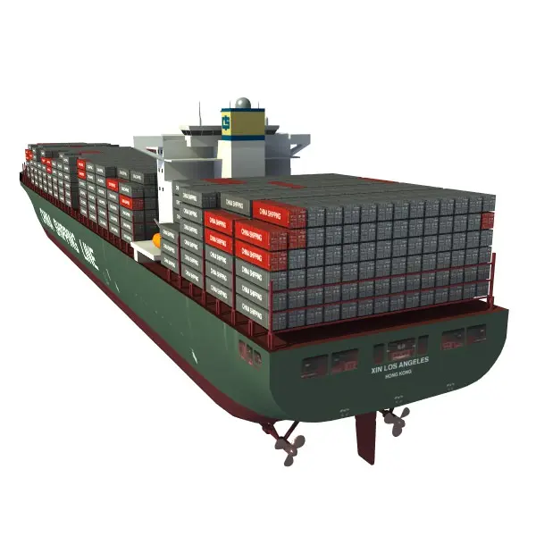 Xin Los Angeles, currently the thrid largest Container Ship. Model is two separate objects, the ship and the containers. Ship includes single continuous UV map, the containers are mapped separately with two colors. Ship: 43,640 polys, Containers: 75,592 polys.