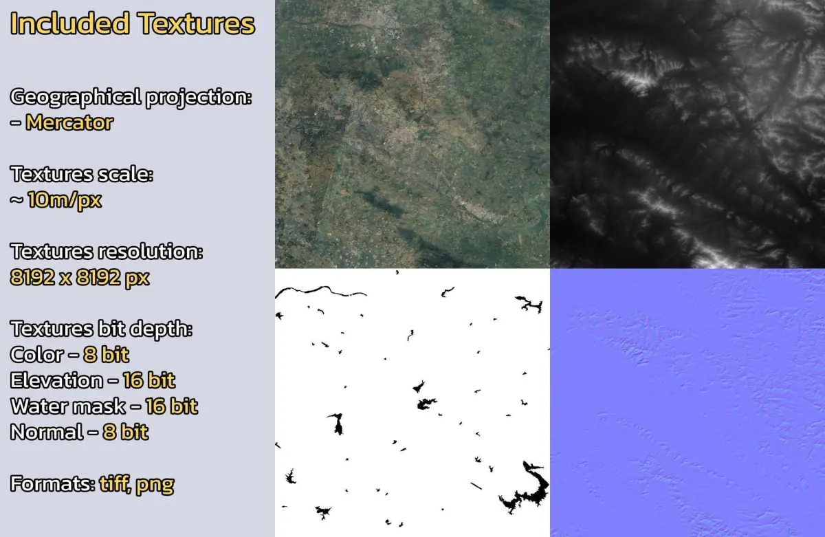 Warning: minor clouds/artifacts may be present on the diffuse color satellite texture due to the nature of the dataset. Check product images.