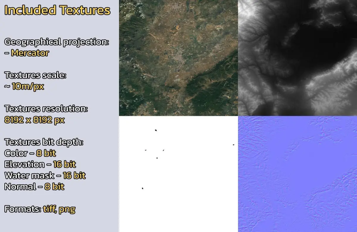Warning: minor clouds/artifacts may be present on the diffuse color satellite texture due to the nature of the dataset. Check product images.
