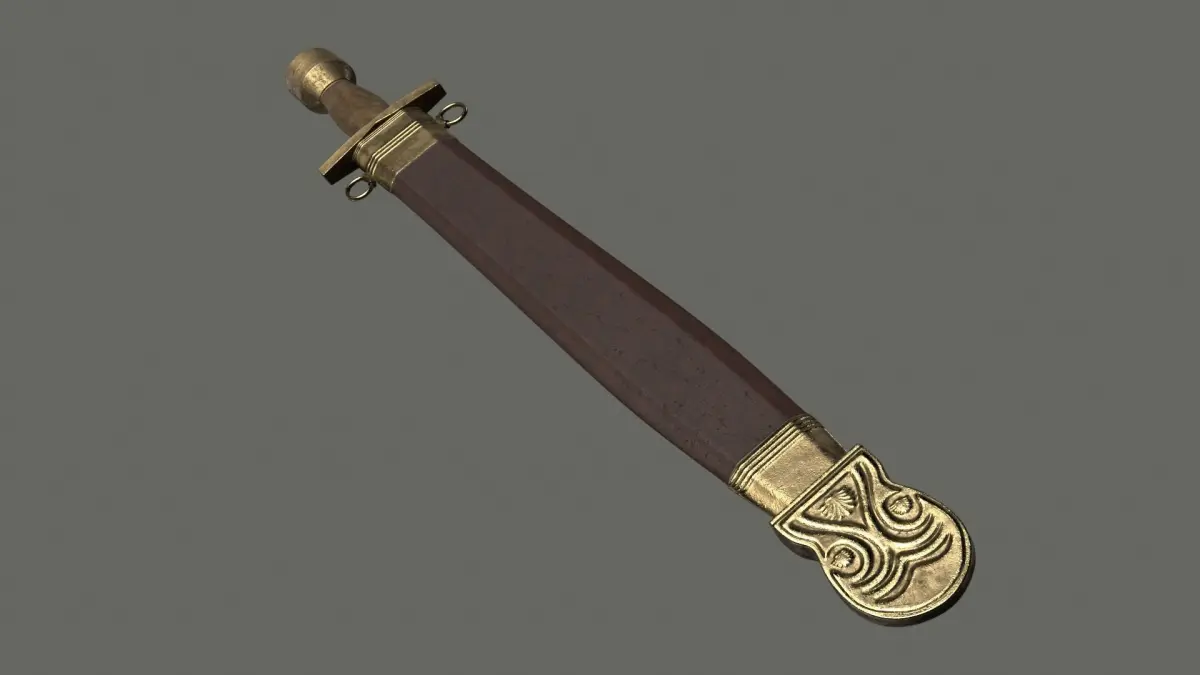 This Xiphos 3D model includes the sword and the sheath. The hard surface components were modeled in Maya and the asset was textured in Substance Painter. It was created to be a prop for the Pezhetarios model (https://www.cgtrader.com/3d-models/military/armor/macedonian-pezhetarios-greek-armor).