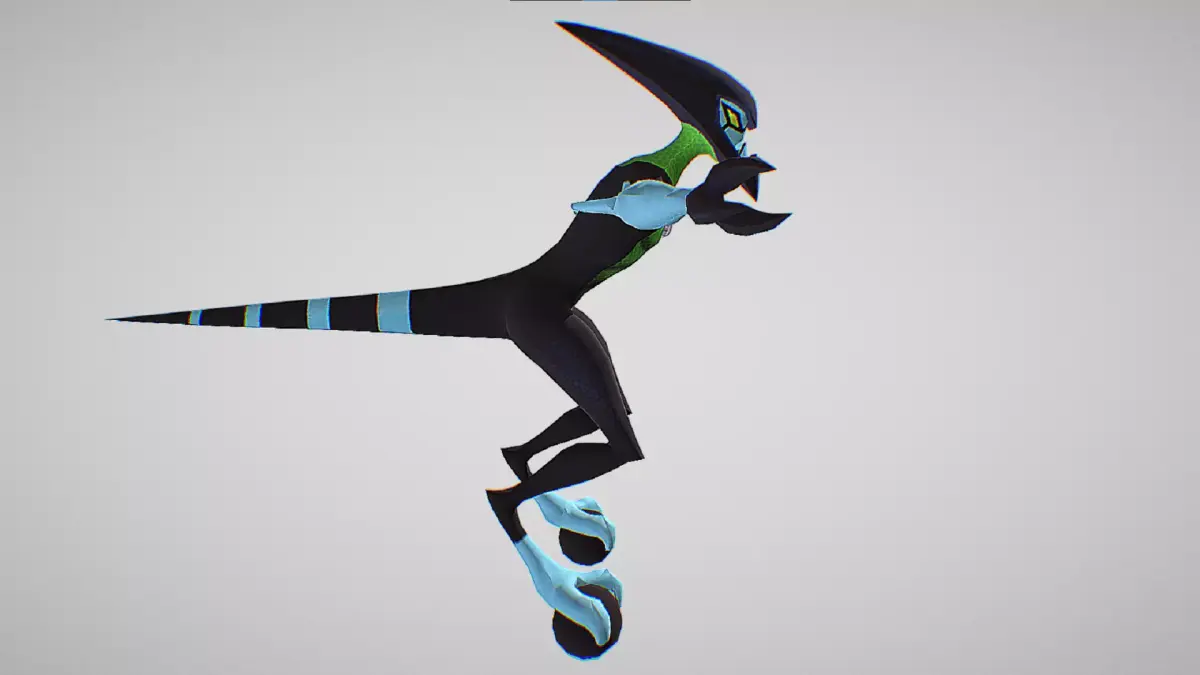In Omniverse, XLR8 is now taller and the white color on his shirt is replaced with green, which now covers his neck. The number of tail stripes have gone down to four, the black balls on his feet are bigger, and his visor is darker.