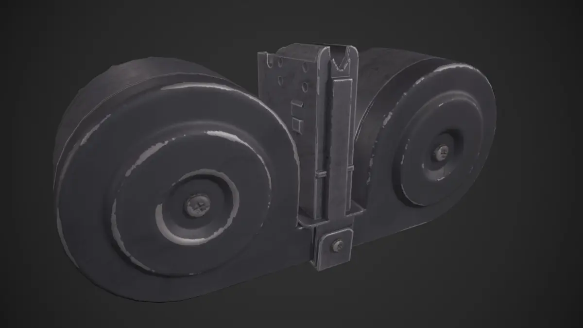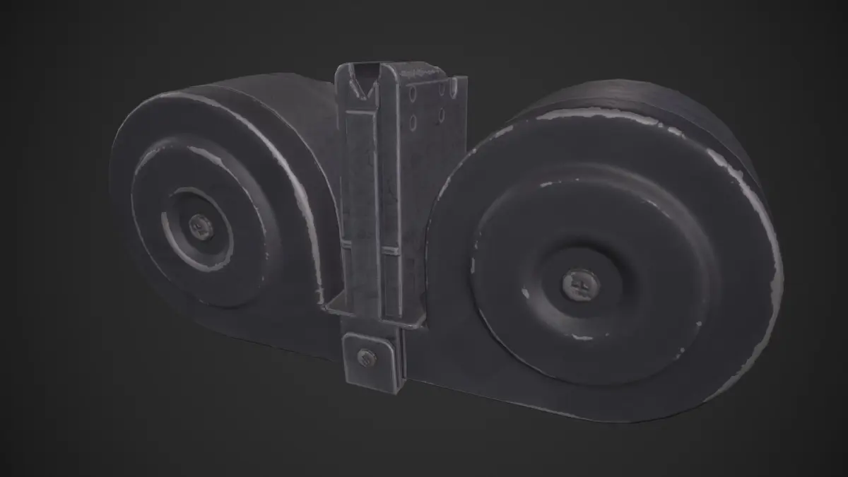 Game-ready XM-8 Drum Magazine asset, with PBR textures included in the files. This drum magazine/beta-C magazine can also be used with other rifles such as the M16. This has 1410 polys (2342 tris) and 1213 vertices.