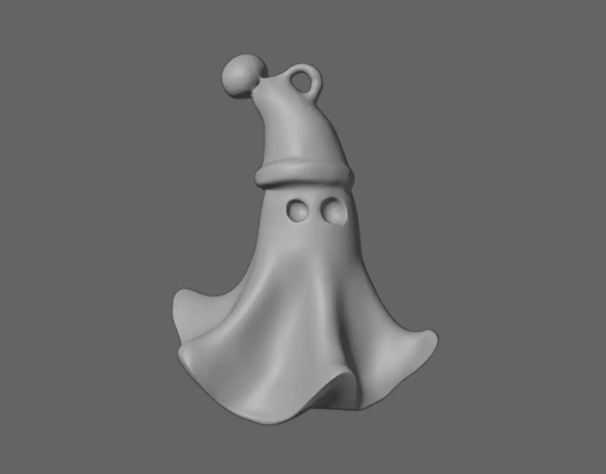 Adorno navideño en forma de fantasma con gorro de Papá Noel. Ideal para imprimir en 3D y decorar tu árbol con un toque divertido y original. Fácil de imprimir, sin soportes y perfecto para pintar a gusto.