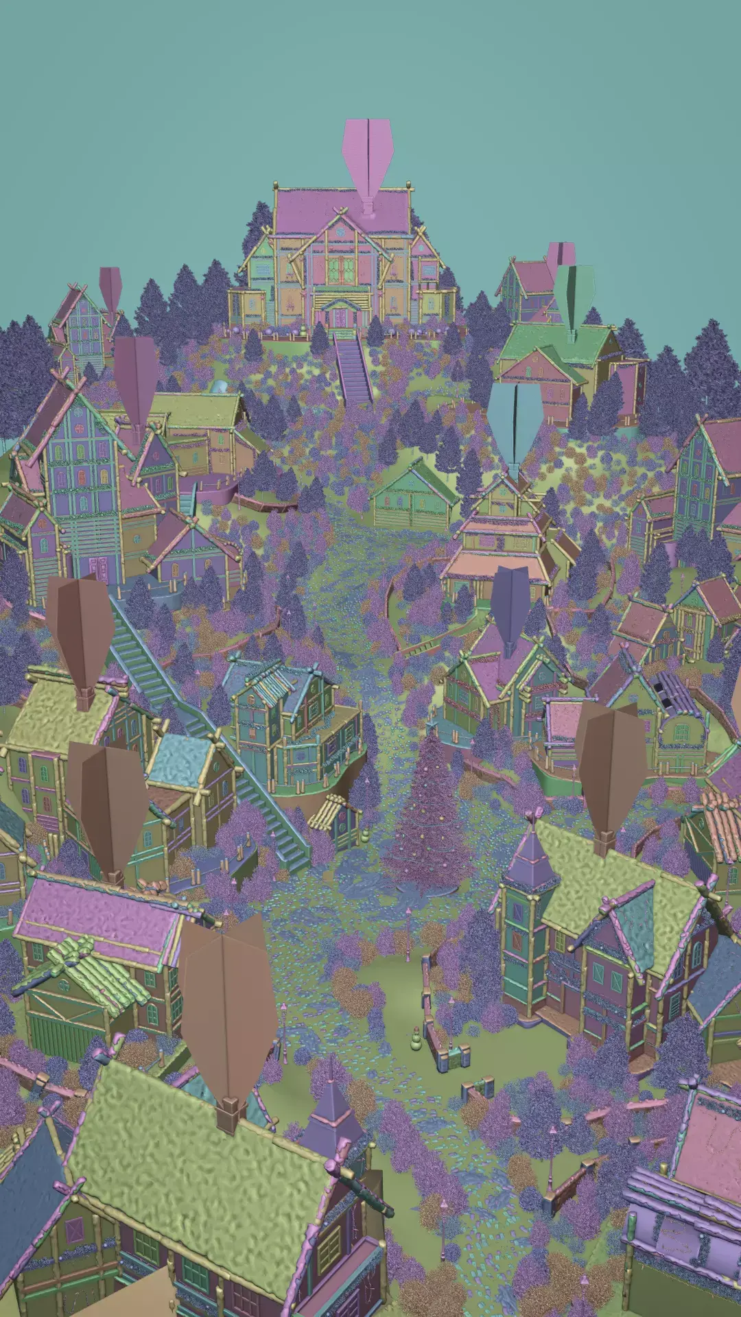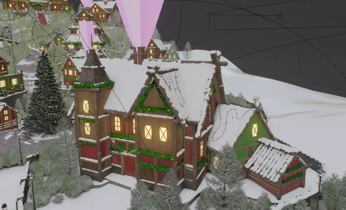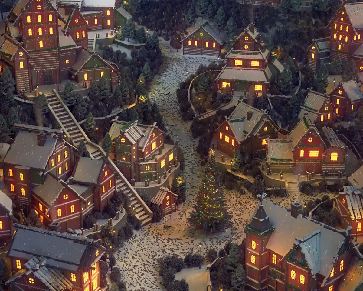 A miniature 3D Xmas/Christmas snowy village scene I made for a brand also includes a room in the main building at the end, with a product and additional assets inside!