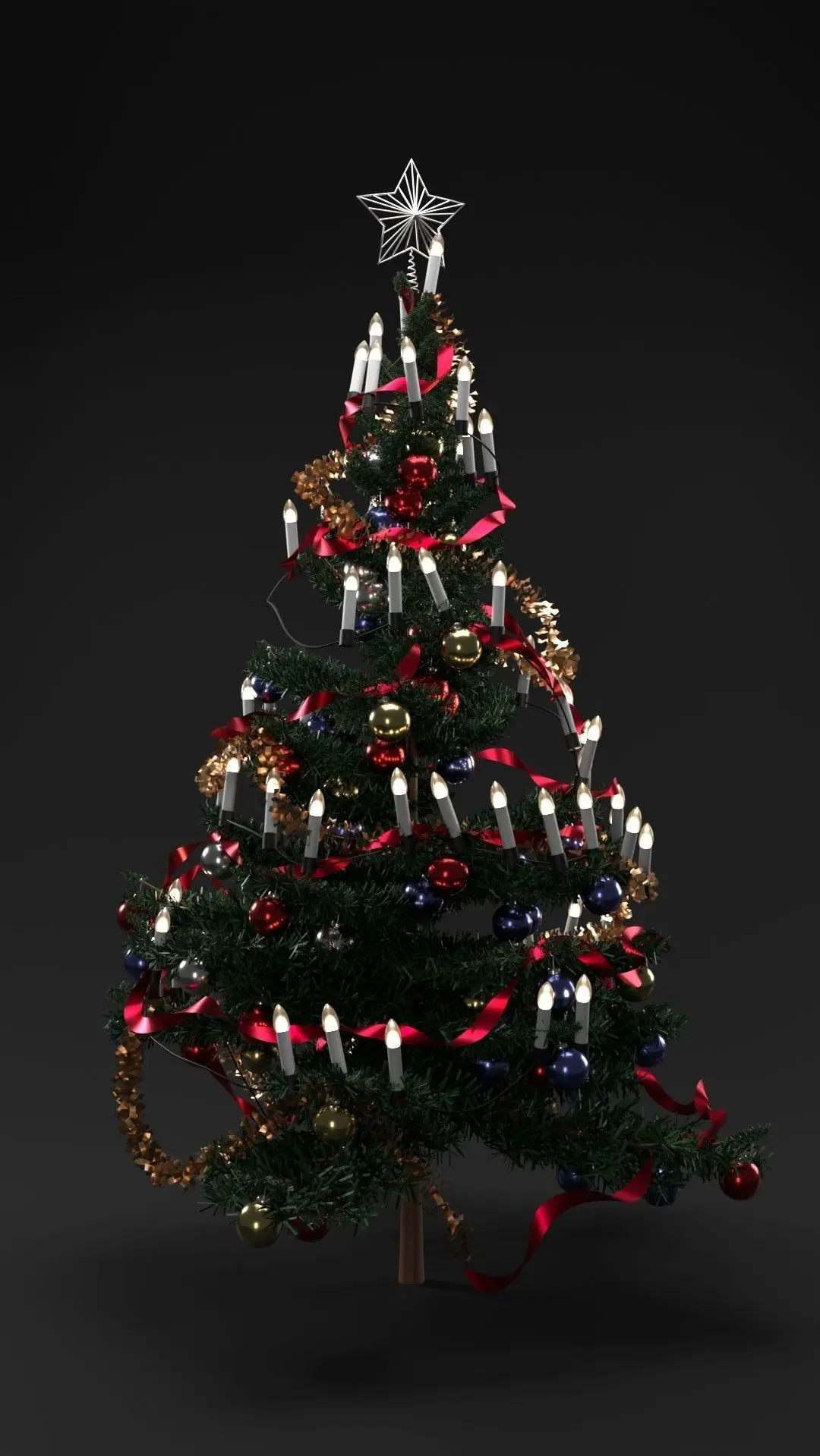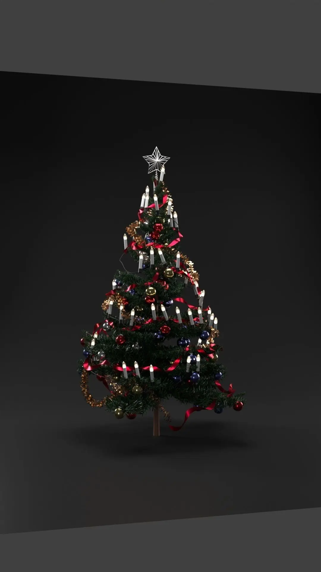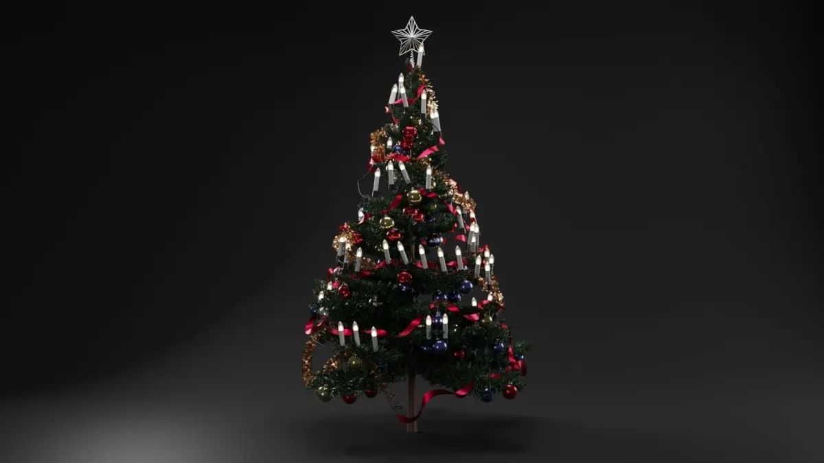 Christmas tree decoration simple and optimized (761,000 poly and 709,000 vertex) and 175 cm (69 inches,5.9 feet) height rendered with corona rendere and bloom and glare filter is on.