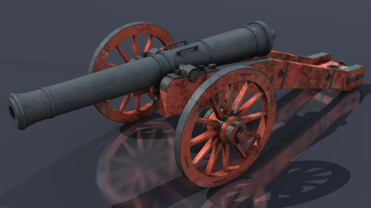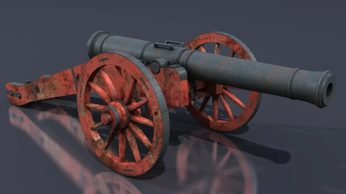Cast iron cannon supplied to the infantry for battles on the field in the 18th century.