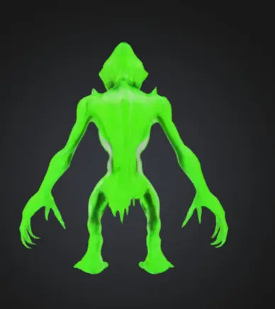 The Xyglor is a terrifying extraterrestrial being with a glowing green, skeletal body and elongated limbs. Its sharp claws and gaping mouth filled with razor-like teeth suggest a predatory nature. With deep, hollow black eyes, it exudes an eerie presence, as if it's always lurking in the darkness, waiting for its next prey. Despite its monstrous appearance, Xyglor is an intelligent species, capable of strategic hunting and stealthy movement, making it a formidable entity in any sci-fi horror universe.