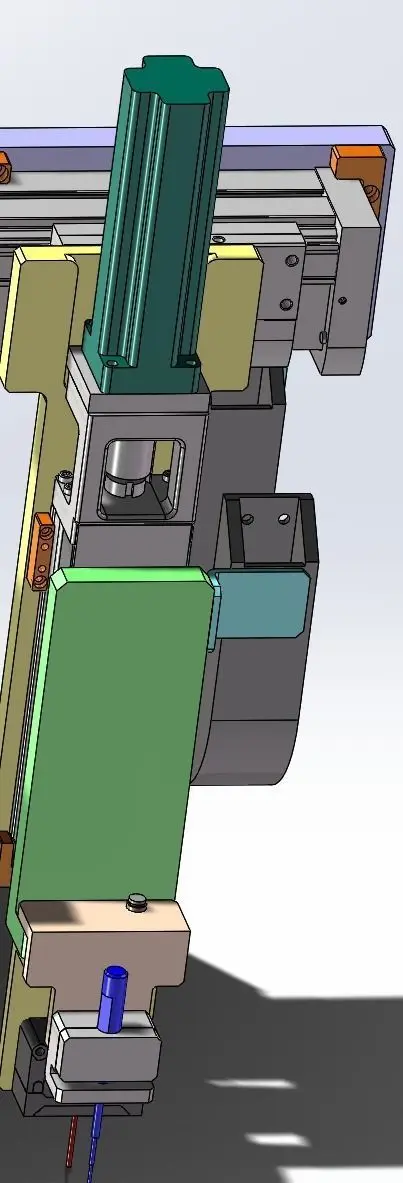 XYZ eddy current inspection mechanism module, which forms XYZ three-axis mechanism through sliding rail mechanism, is combined with eddy current inspection mechanism in the z axis module, including laser sensor head and turbine inspection head, to carry out inspection of products, which can be widely used in non-destructive testing.Mechanism include