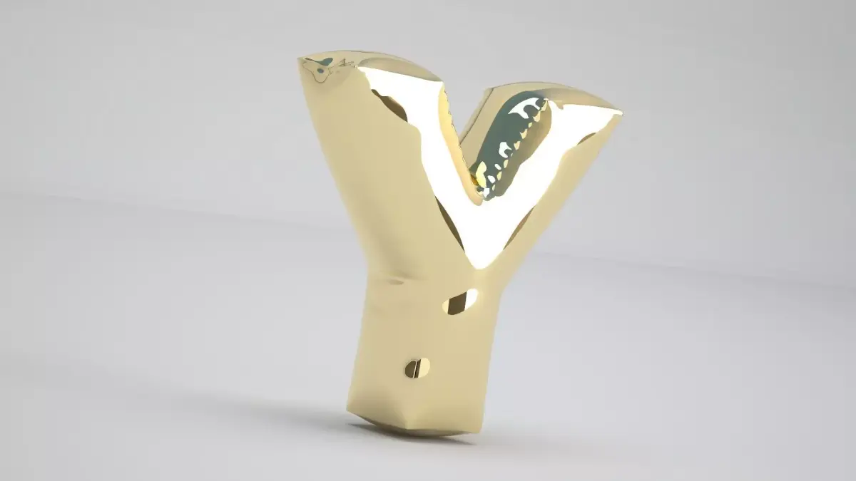 Realistic 3D Model OF Balloon Y Alphabet Gold