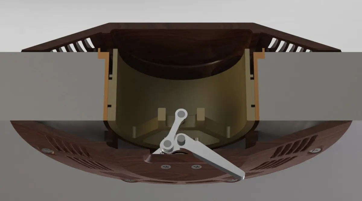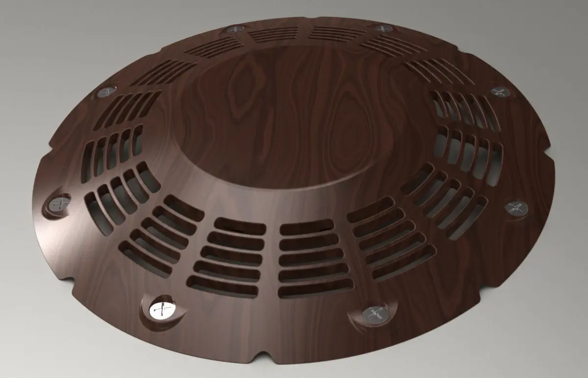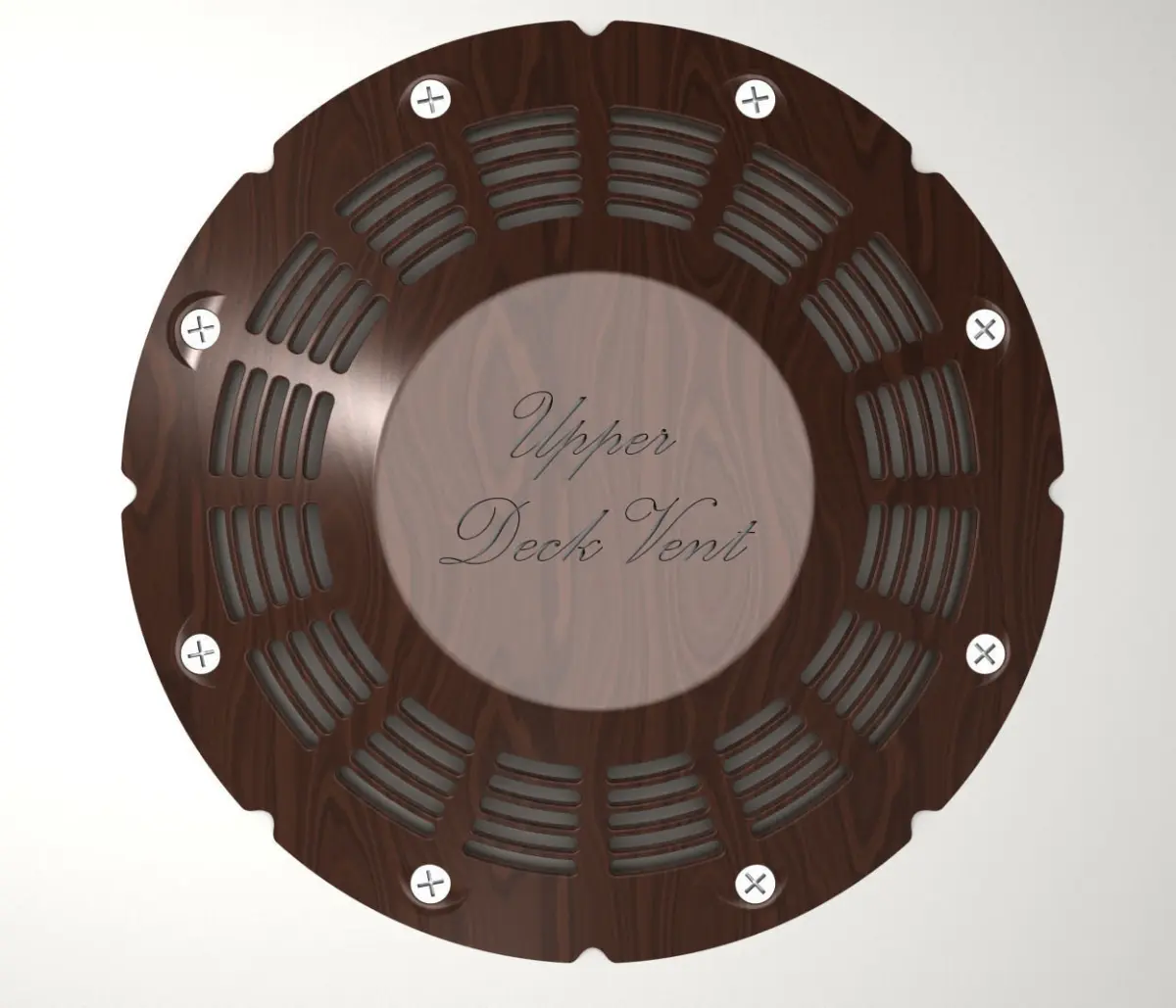 I designed this with CNC turning & 3 axis economical milling in mind. This would be reasonably affordable to manufacture in low quantities and would be the highest quality, top and bottom baskets use the same wood batch as is used on the rest of the yacht. The baskets are also both same design to keep machine setup costs low, same jig can be used to machine both, control system is spring-less with a wiper at the top and a seal at the bottom, this should provide enough friction for the sleeve to stay in place, unit is strong enough for someone to step on(or jump on, even a fat person :) ). Low profile design 22.5mm high, flow rate is within 5% of current 30mm vent.