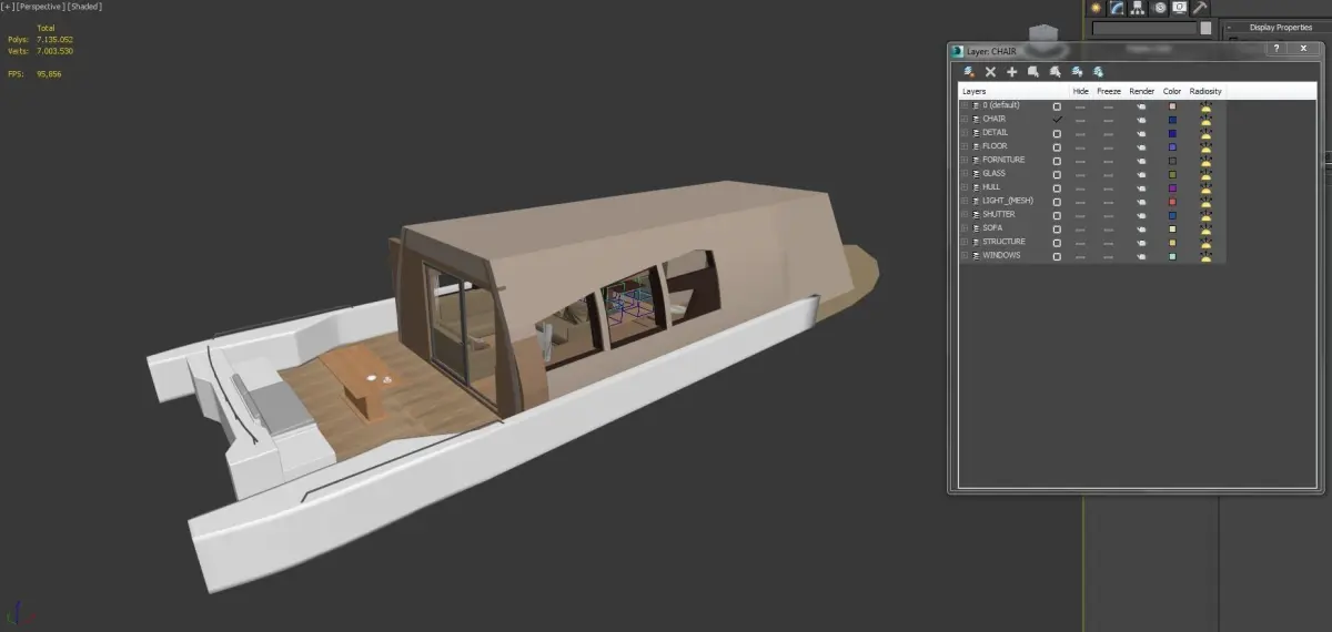 This model is ONLY a partial of Ferretti 720 Yacht, is only the interior.