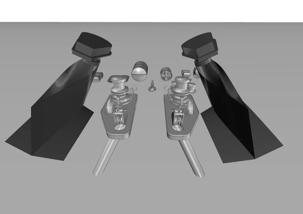 - There are cranes,anchor,windlass,liferaft,steel and chrome all deck quipment etc.