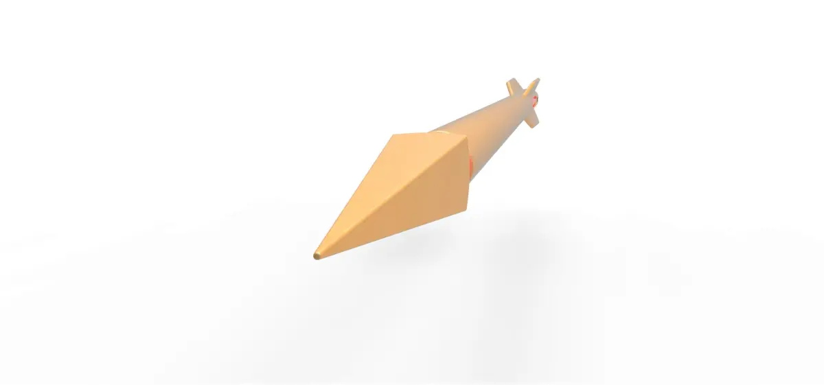 The model consists of parts: Black insert 1-4, Body part 1-3, Front hub, Front red insert 1,2, Front spike, Middle red insert 1,2, Rear nozzle, Rear red insert 1,2, Rear spike.