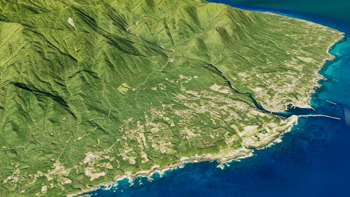 yakushima Island 3d model terrain. 3d model of the Island of yakushimawith its landscape of mountains, beaches and forests.