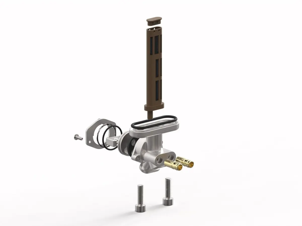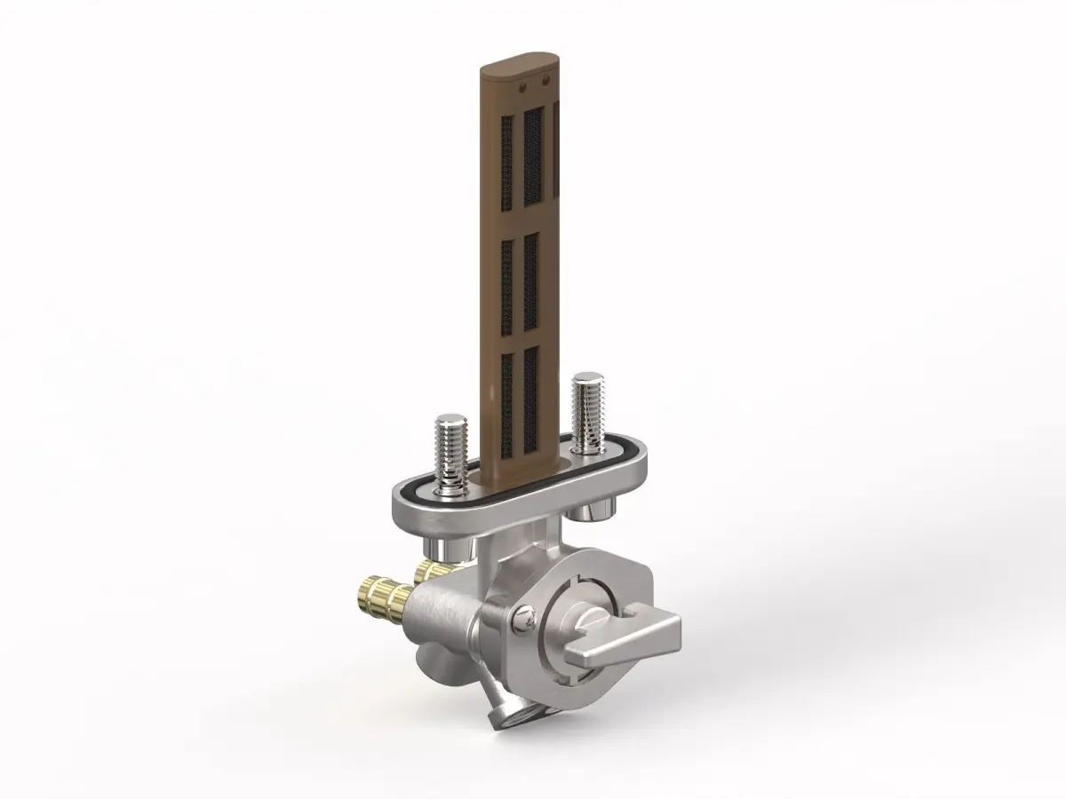 This is a detailed model of a sub fuel cock for a motorcycle (suitable for petrol / gas and diesel), specifically taken from a 1986 Yamaha SRX600. The model includes the fuel cock, fittings, filter, o-rings, and screws. Dimensions were measured from the real product.