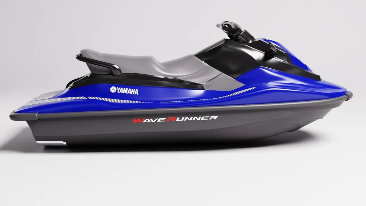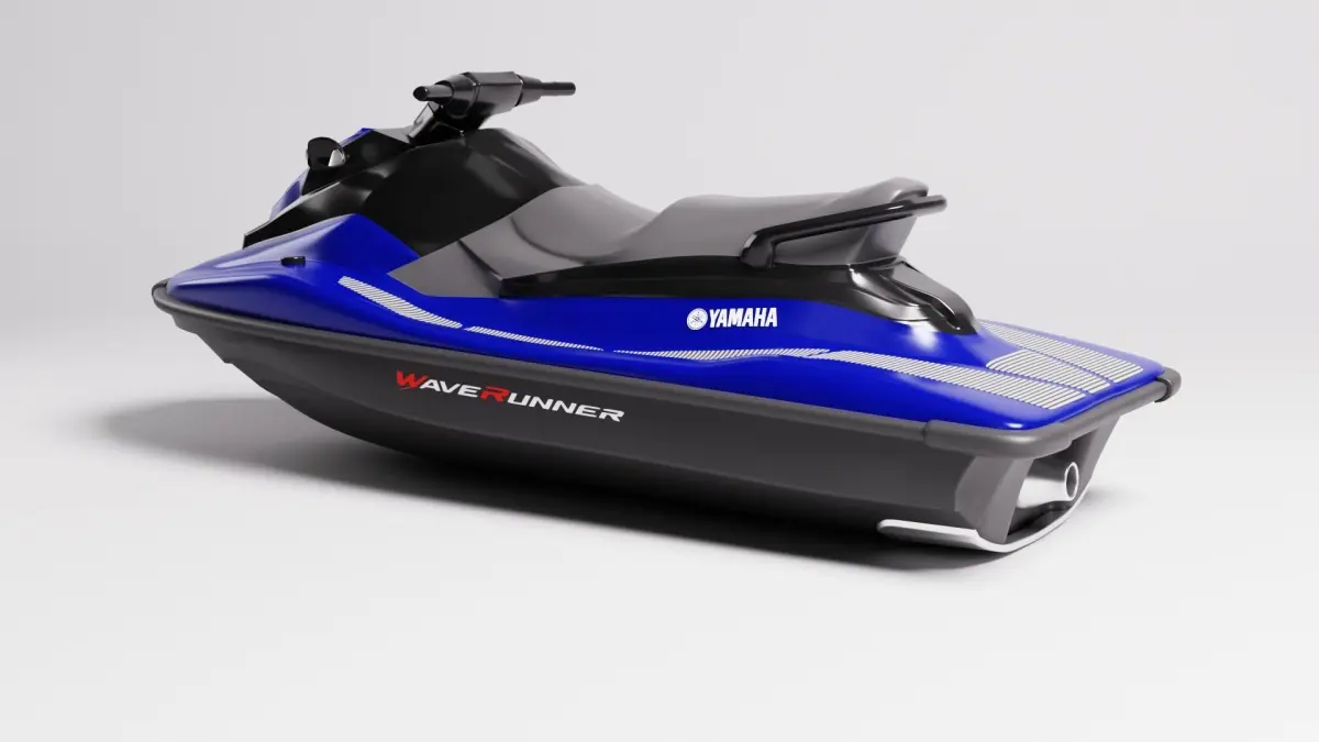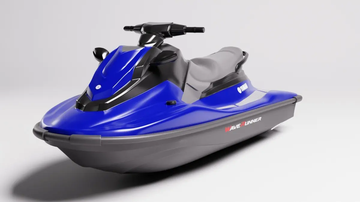 Yamaha WaveRunner Deluxe in 2 versions: high (over 300k polys) and low poly (45k polys) for games, unwrapped with different color textures, animated (floating) and rigged handlebar.
