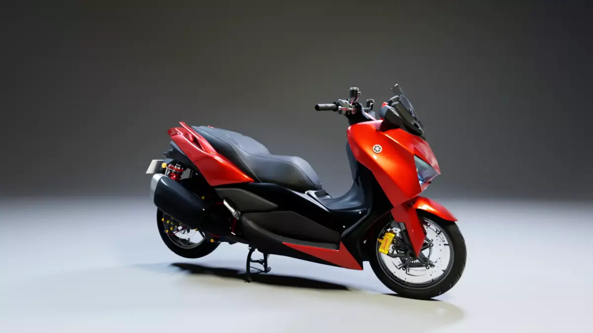 This is a highly detailed 3D model of the Yamaha XMAX, a premium urban maxi-scooter. The model has been meticulously crafted with a focus on silhouette accuracy and material definition, making it ideal for architectural visualization, urban environment renders, and mid-range game background assets.