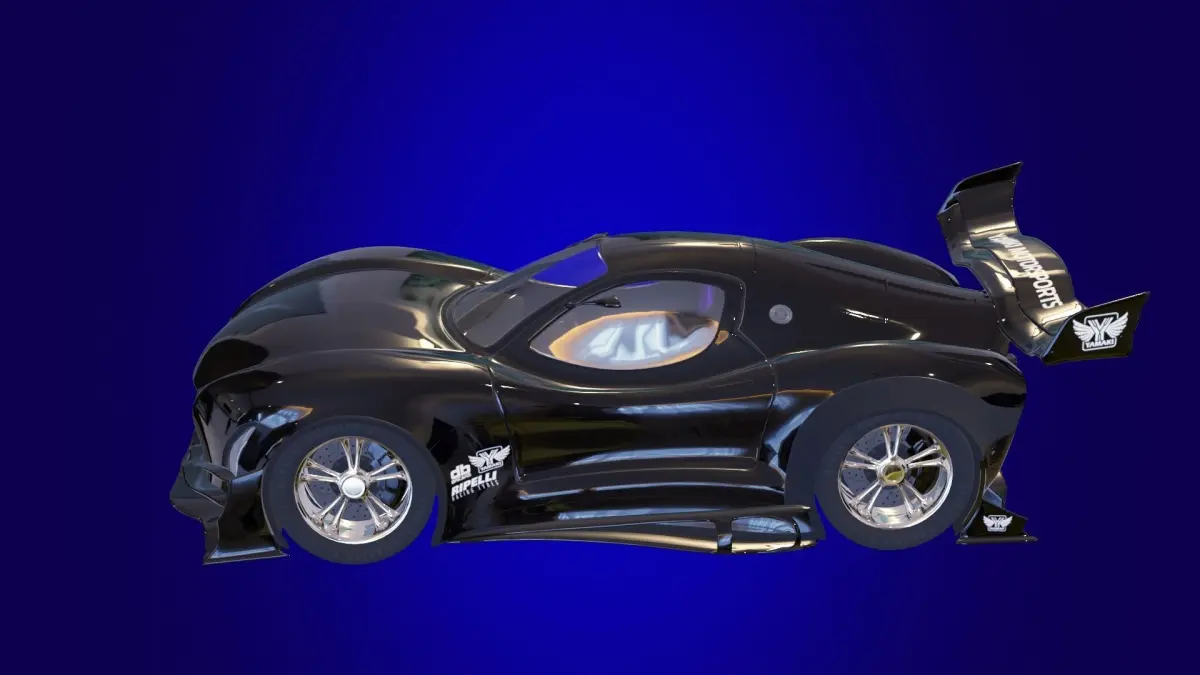 This is a Yamaki GTX-R supercar, the mesh is perfectly shaped, the car has brakes and pads, the car also has brake and gas pedals, a steering wheel and exhaust pipes, and a large number of different stickers, the model is fully consistent with the real Yamaki GTX-R supercar